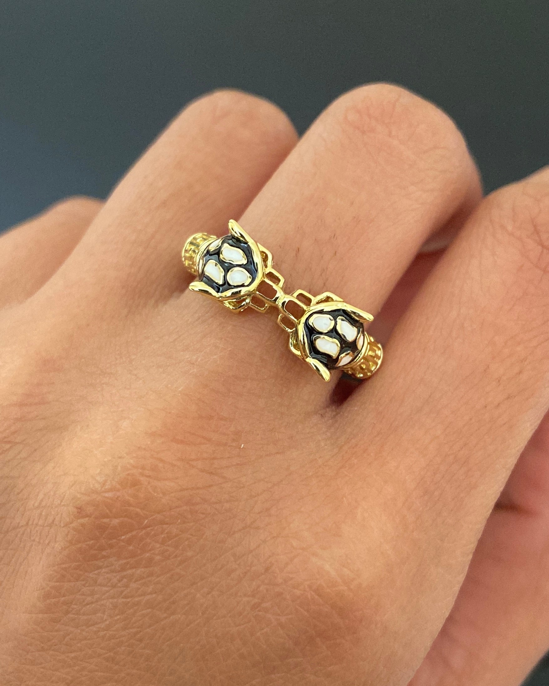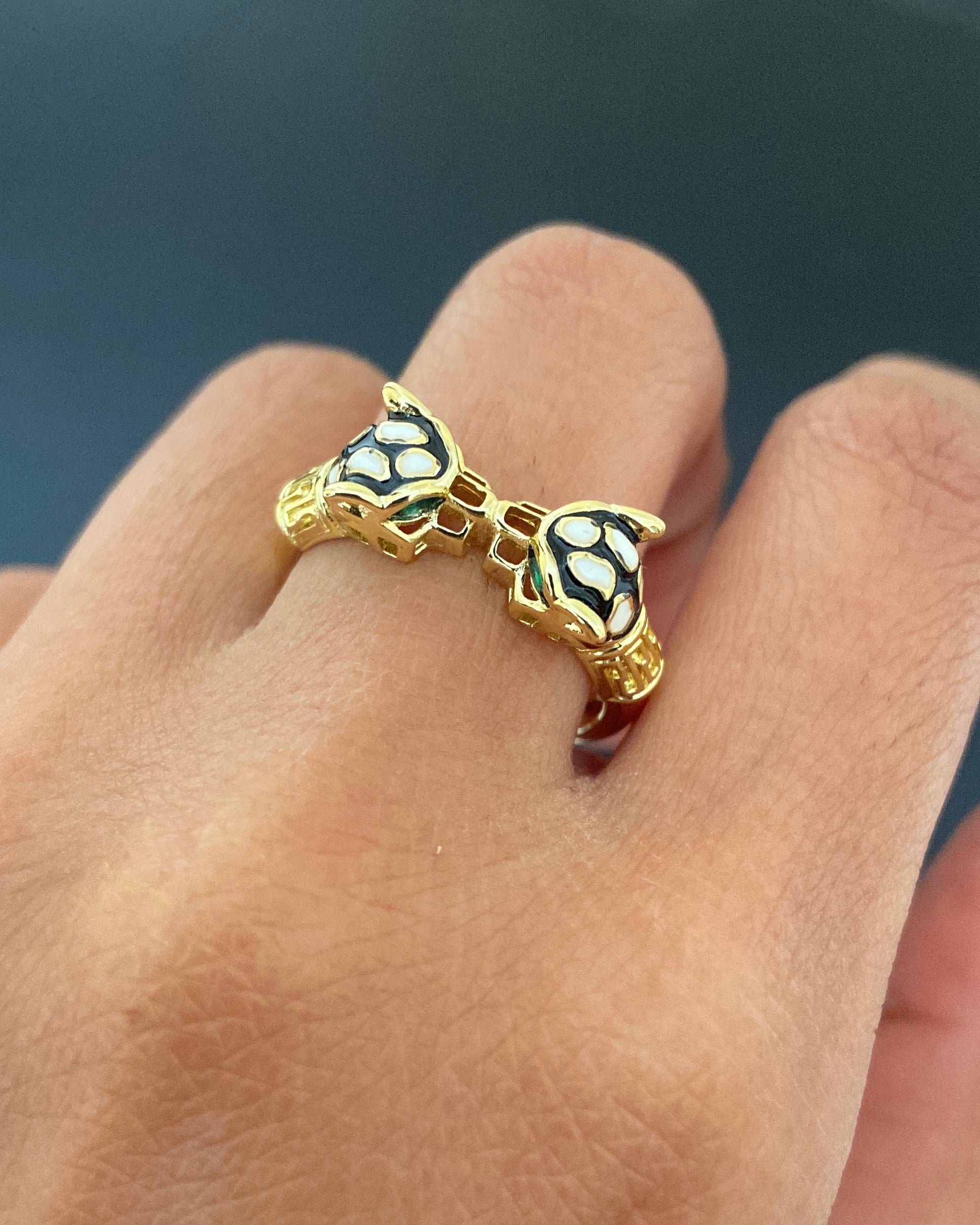 18K Yellow Gold Plated White & Green Crystal Jabari Cheetah Ring