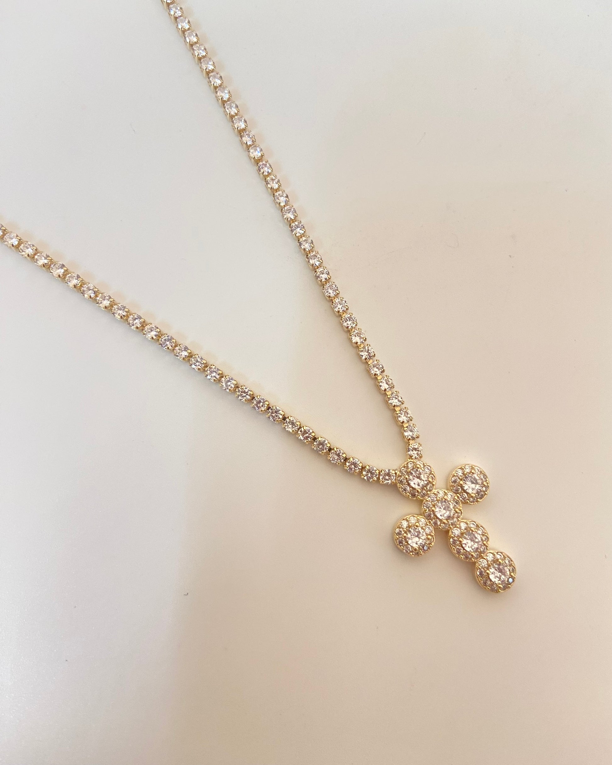 Cross Gold Tennis Necklace