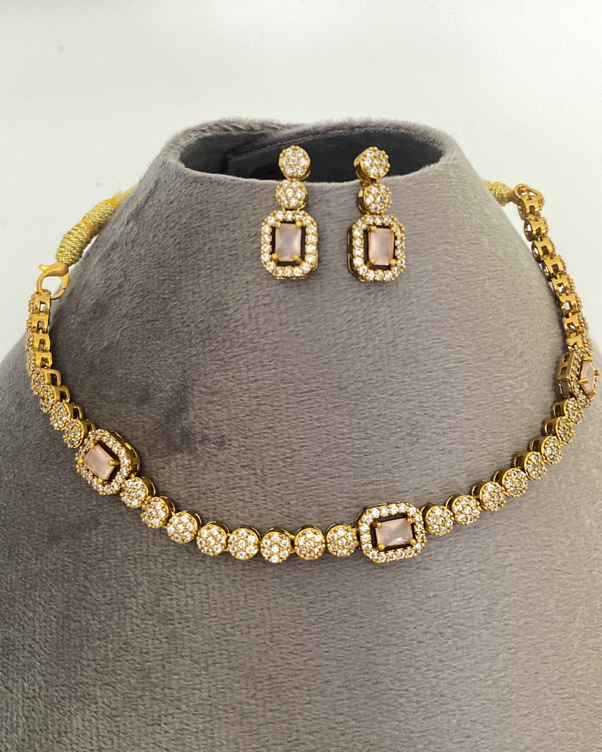 Stones: Navaratna-style semi-precious imitation stones paired with brilliant American Diamonds (AD).