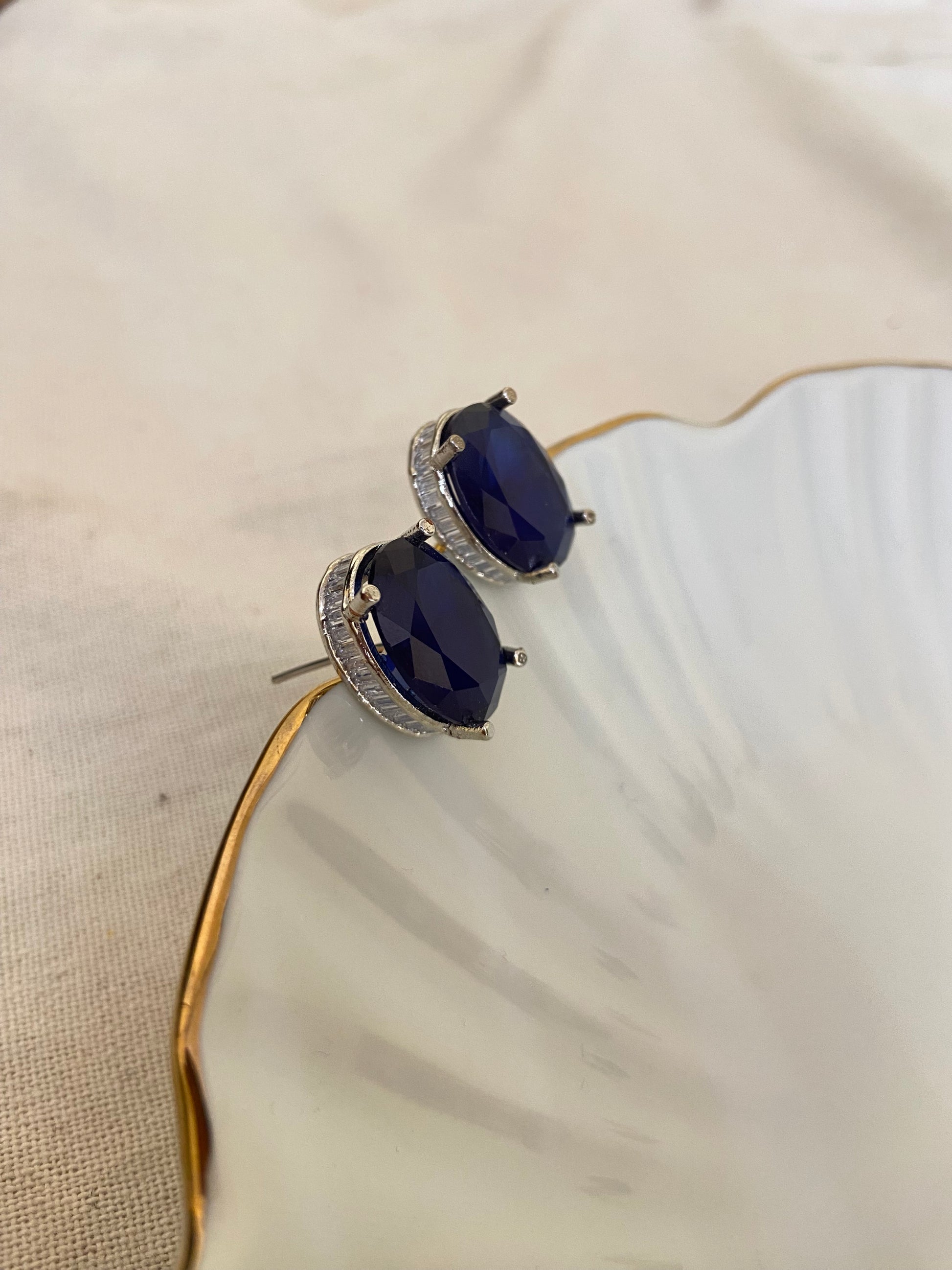 Sapphire Oval Studded Earring