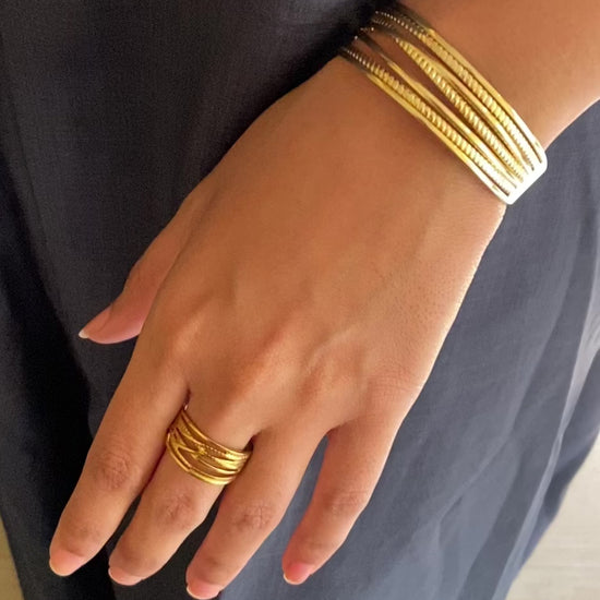 Textured Cuff Bracelet + Ring Combo