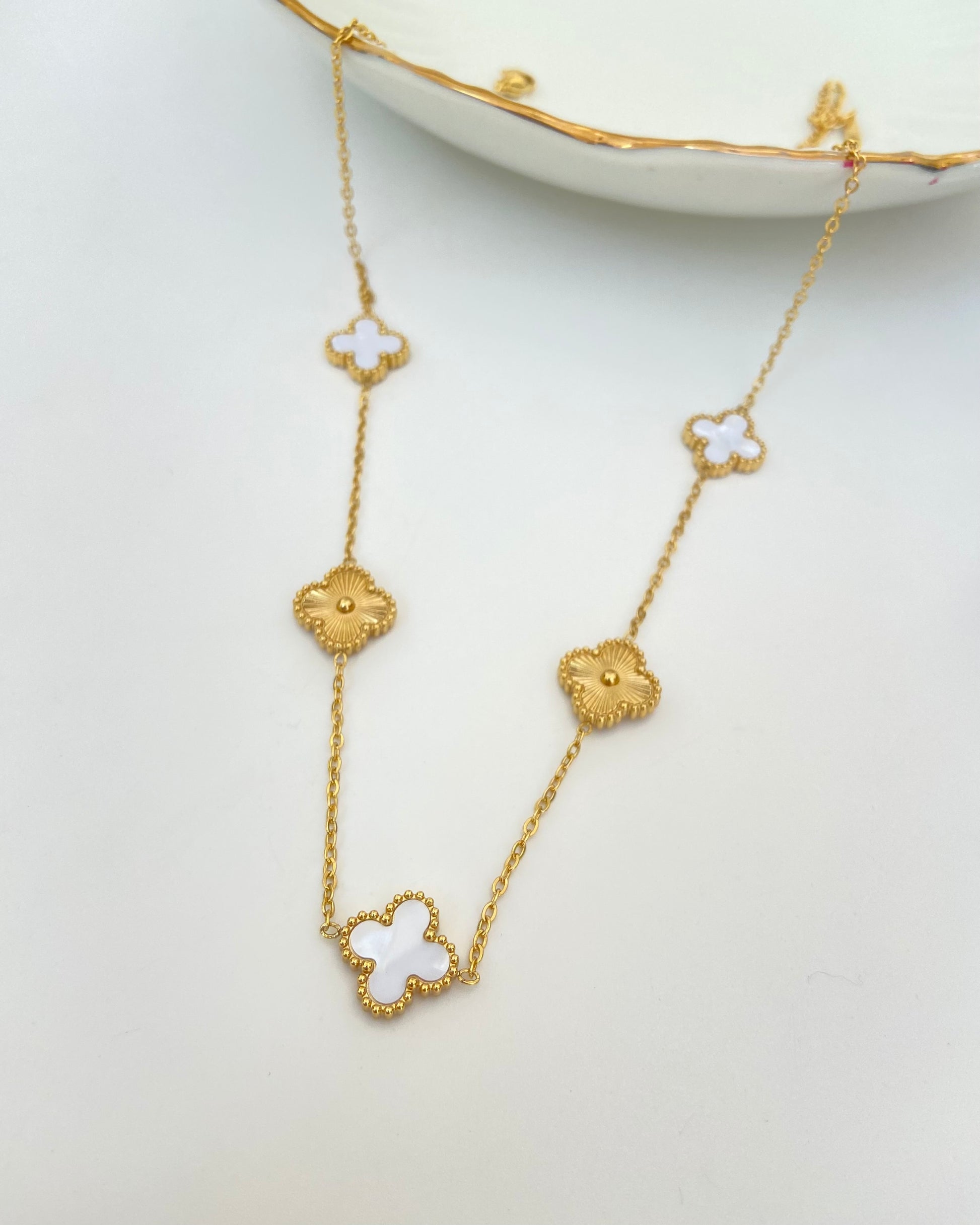White & Gold Clover Necklace